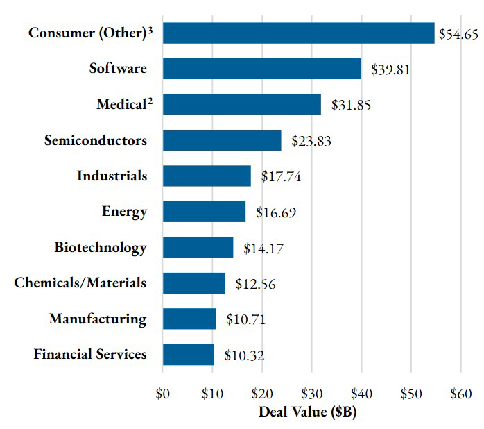 - The medical industry2 followed in third place with several multi-billion-dollar deals.