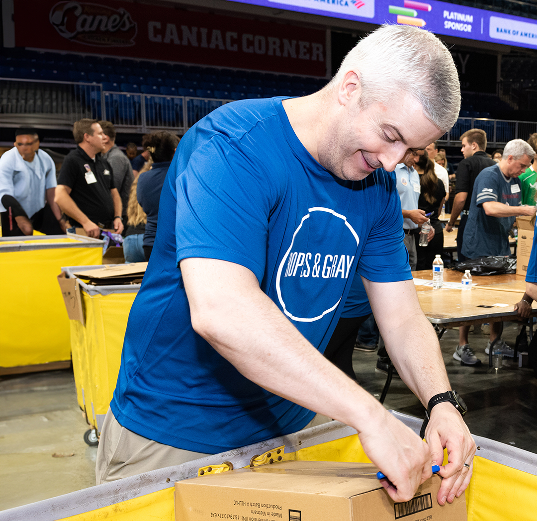 Over 20 Ropes & Gray volunteers helped to fill over 35,000 backpacks for underprivileged Chicagoland children at Cradles to Crayons’ annual Backpack-A-Thon. In the coming weeks the organization will share a total of 105,000 backpacks filled with clothing, school supplies, and everyday essentials with students across Chicago.